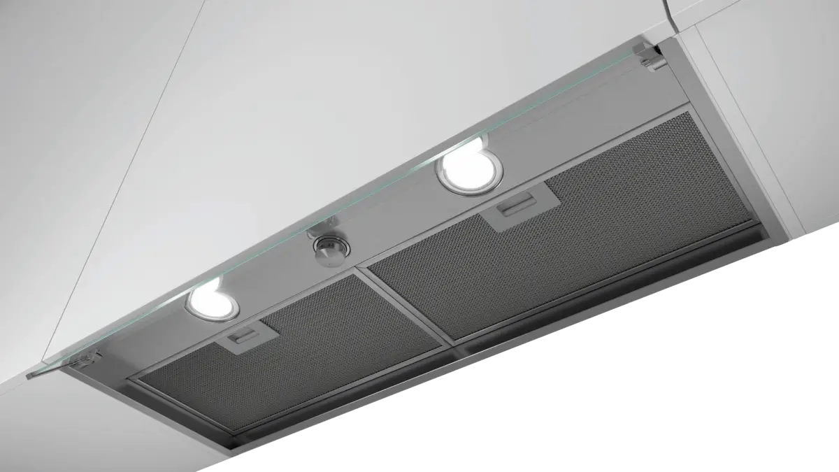 Integreerbare afzuigkap, Afvoer, Om te bouwen naar / geschikt voor recirculatie, 3 Standen, Draaiknopbediening, LED verlichting, aantal lampen: 2, Metaal vetfilter, Energieklasse A, netto breedte: 89,4 cm, netto hoogte: 35,6 cm, netto diepte: 31 cm