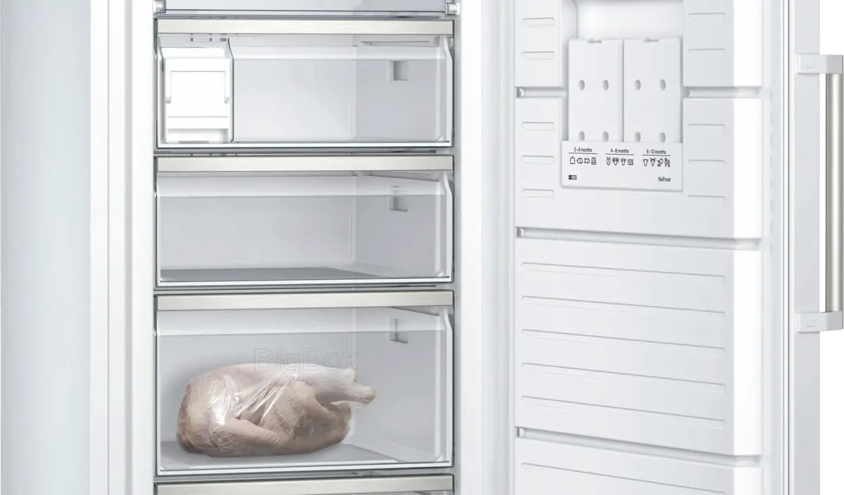 Vrieskast vrijstaand, 366 l Inhoud, 3 Legplateaus met klep, 4 Lade, BigBox [XXL]:1, Supervriezen, NoFrost, Digitale temperatuurweergave, VarioZone, Energieklasse C, netto breedte: 70 cm, netto hoogte: 191 cm, netto diepte: 78 cm