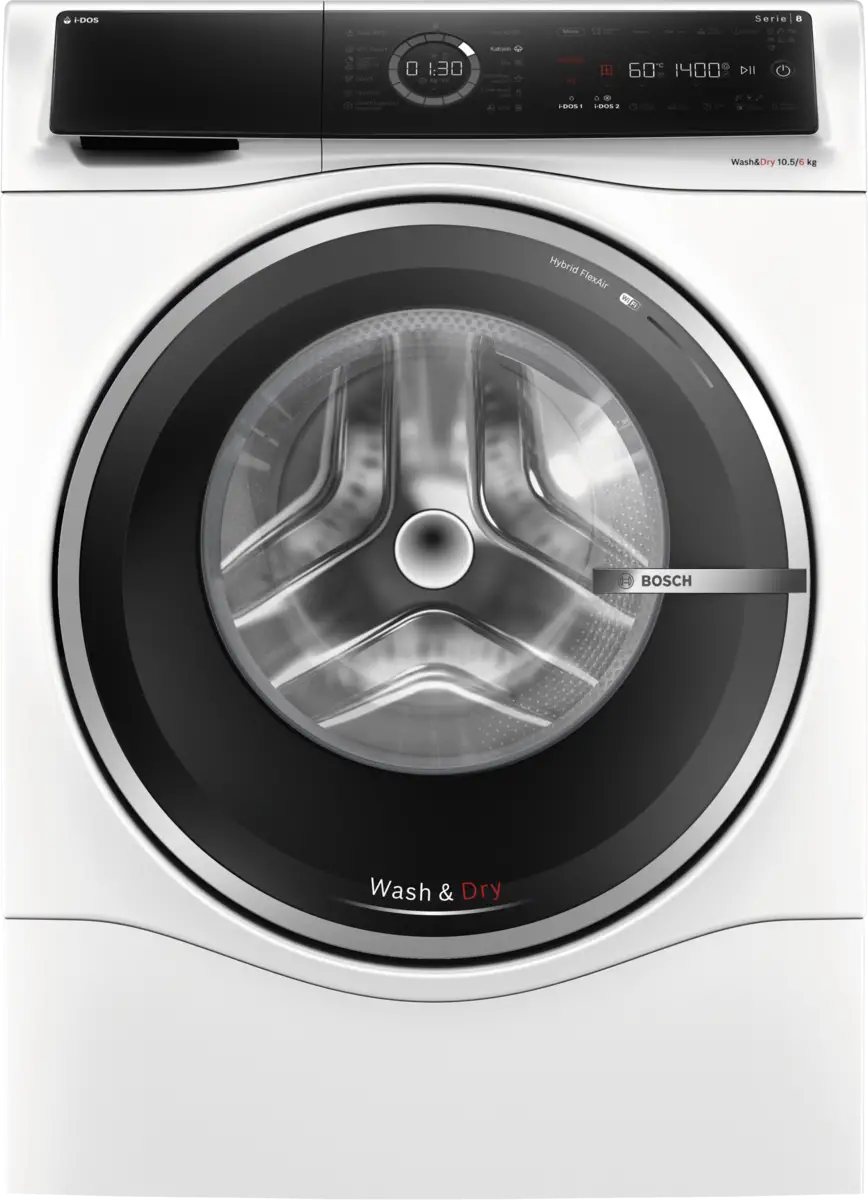 Was-droogcombinatie, 10,5 kg laadvermogen wassen, 6 kg laadvermogen drogen, max. 1.400 Toerental/min, Vario-trommel, Touch Control bediening, Startuitstel, Eindtijd keuze, Favorieten instelbaar, Bijvulfunctie, LED-Display, Programmaverloop weergave, Eco Feedback (weergave energie- en waterverbruik), i-Dos, Programma’s en opties Makkelijk strijken, Sport, Wol / handwas, Onbalansherkenning, Verlichte binnentrommel, EcoSilence Drive motor, Aquastop, Kinderbeveiliging, Home Connect (bediiening via Smartphone of Tablet mogelijk), Via app ondersteunde gegevensoverdracht, Via app te bedienen, Energieklasse D, netto breedte: 59,8 cm, netto hoogte: 84,8 cm, netto diepte: 62,2 cm
