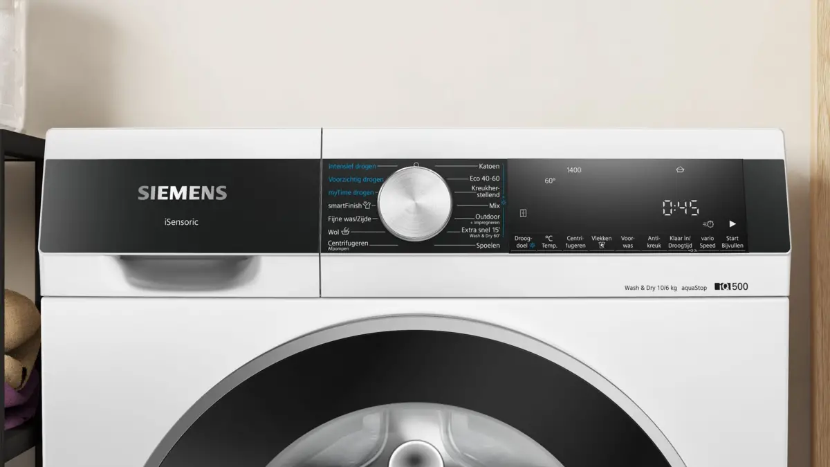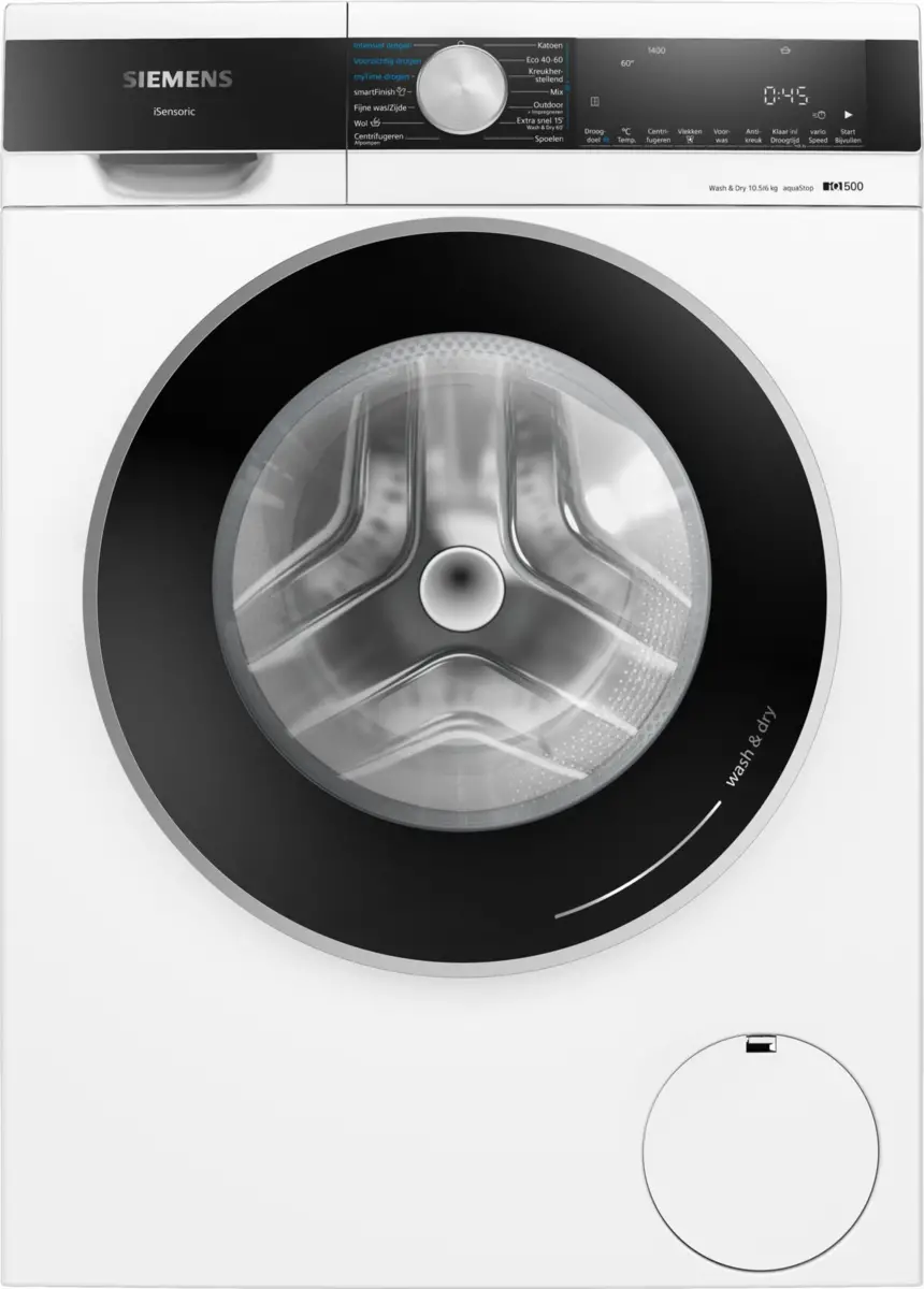 Was-droogcombinatie, 10,5 kg laadvermogen wassen, 6 kg laadvermogen drogen, Wave trommel, Eindtijd keuze, Bijvulfunctie, LED-Display, Programmaverloop weergave, Resttijdaanduiding, WaterPerfect Plus, Programma’s en opties Eco, Vlekken, My Time, Outdoor / impregneren, Wol / handwas, Beladingsherkenning, Onbalansherkenning, Onderhoudsvrije Condensor, iQdrive motor, Aquastop, Kinderbeveiliging, Energieklasse D, netto breedte: 59,8 cm, netto hoogte: 84,8 cm, netto diepte: 59 cm